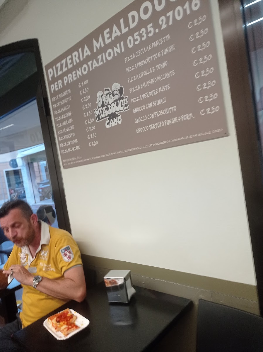 Welcome to Mealdough Gang, a charming pizza haven nestled in the heart of Mirandola, Italy. This delightful pizzeria specializes in "pizza al taglio," serving up generous, crispy slices adorned with fresh, vibrant toppings. Diners rave about the warm, friendly service, where Anna and Angelo create an inviting atmosphere that feels like home. With a menu brimming with delicious options, it’s no wonder patrons leave satisfied for under ten euros—a steal for the quality offered.